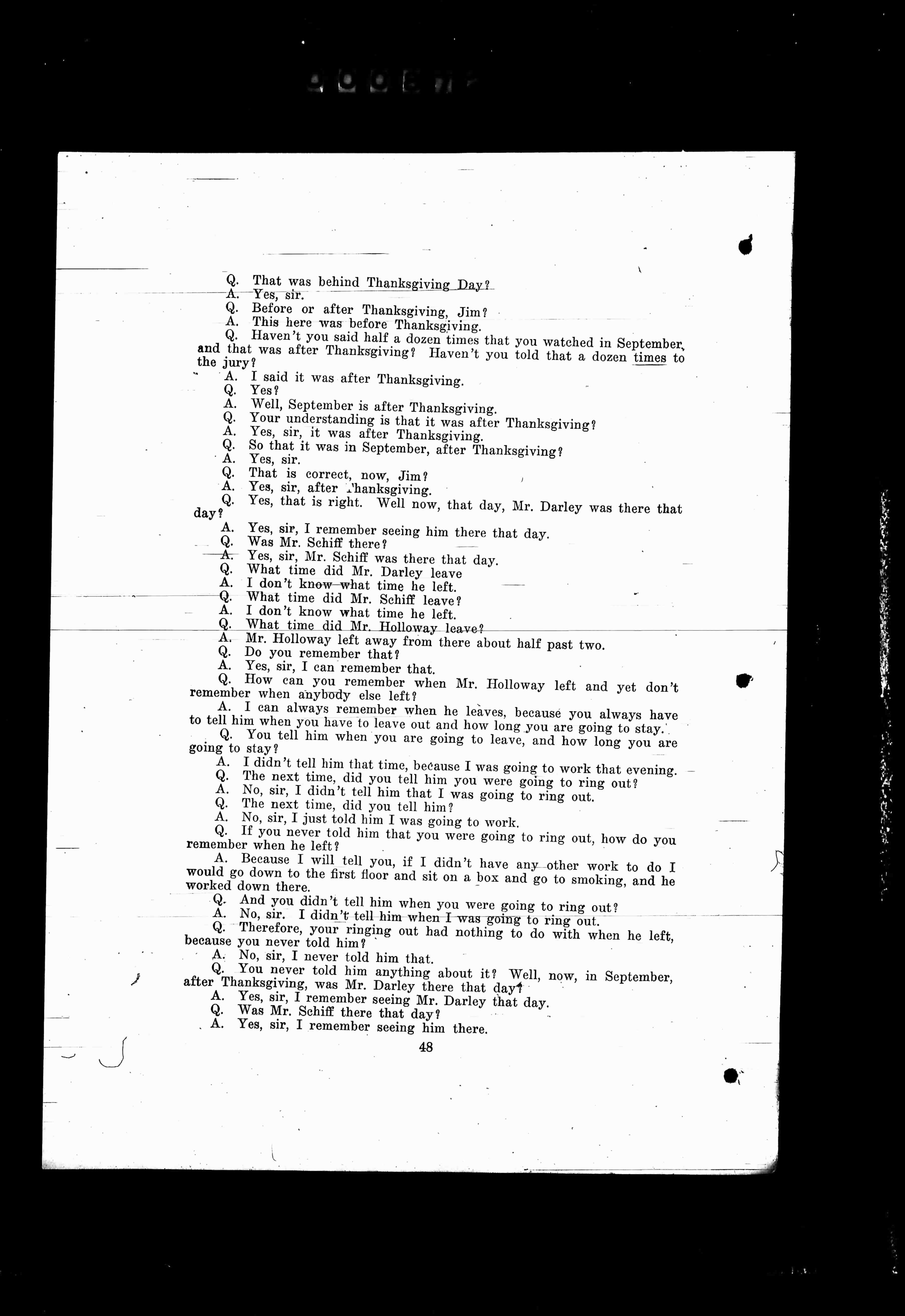 after Thanksgiving, was Mr. Darley there that day?