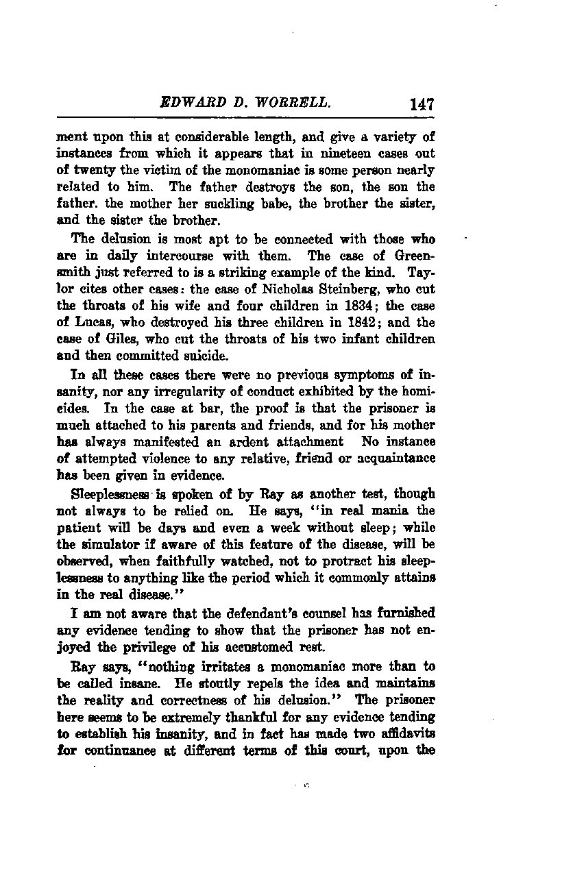 I will comment upon this at considerable length and provide a variety of instances from which it appears that in nineteen out of twenty cases, the victim of the monomaniac is someone nearly related to them. The father destroys the son, the son the father, the mother her suckling babe, the brother the sister, and the sister the brother.