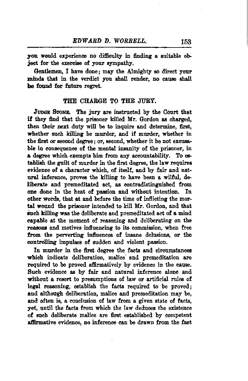 Gentlemen, you would experience no difficulty in finding a suitable object for the exercise of your sympathy. I have done; may the Almighty so direct your minds that in the verdict you shall render, no cause shall be found for future regret.