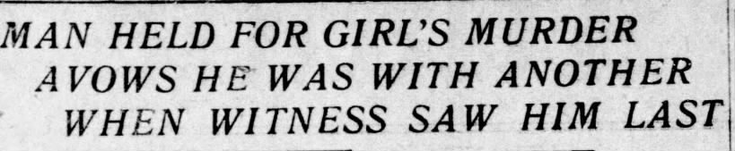 Monday, 28th April 1913 Man Held for Girl’s Murder Avows He Was With Another When Witness Saw Him Last, The Atlanta Journal