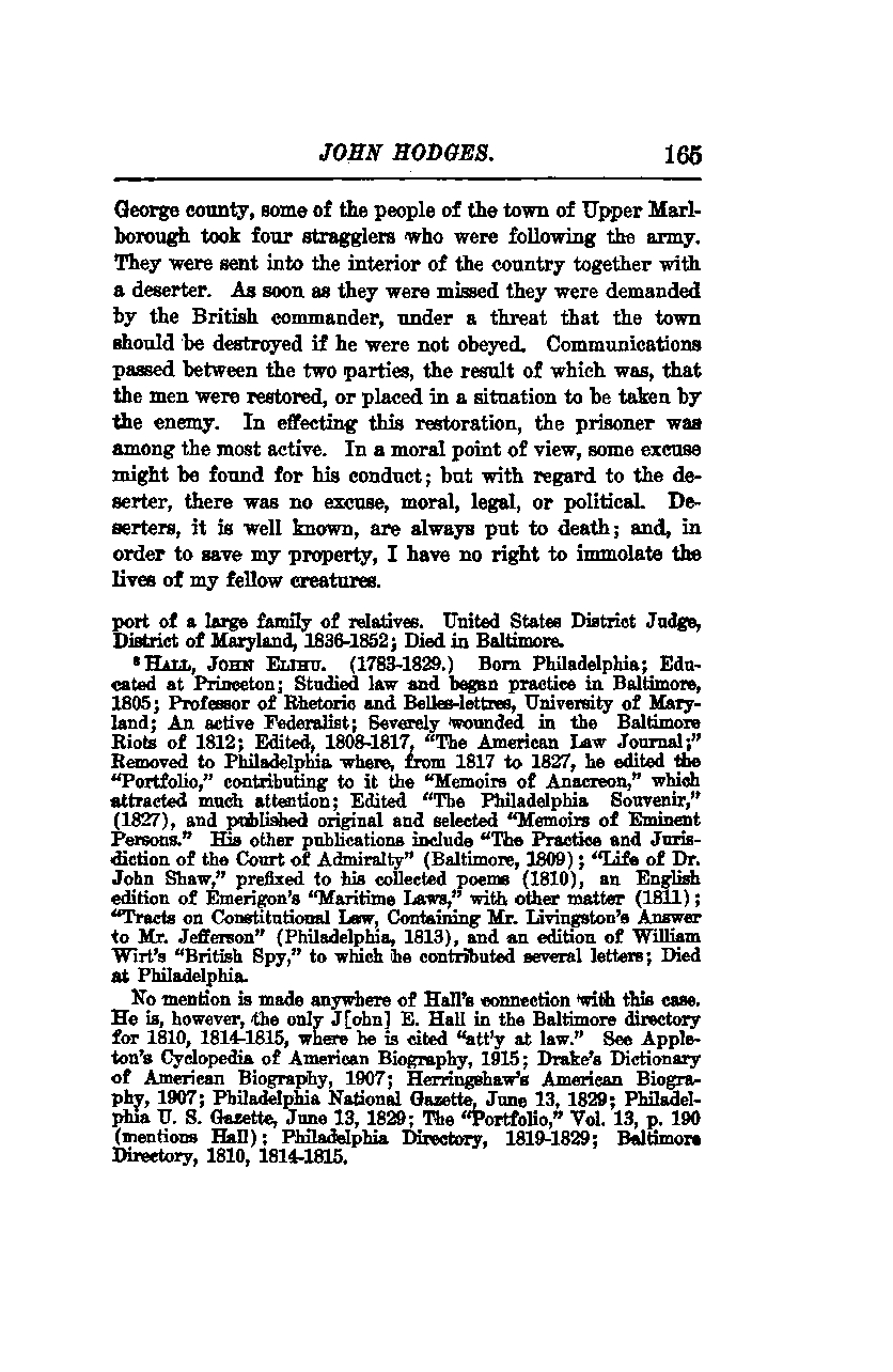 No mention is made anywhere of Hall's connection with this case. However, he is the only John E. Hall listed in the Baltimore directory for 1810, 1814-1815, where he is cited as an "attorney at law." See Appleton's Cyclopedia of American Biography (1915), Drake's Dictionary of American Biography (1907), Herringhaw's American Biography (1907), Philadelphia National Gazette (June 13, 1829), Philadelphia U.S. Gazette (June 13, 1829), "The Portfolio," Vol. 13, p. 190 (mentions Hall), Philadelphia Directory (1819-1829), and Baltimore Directory (1810, 1814-1815).