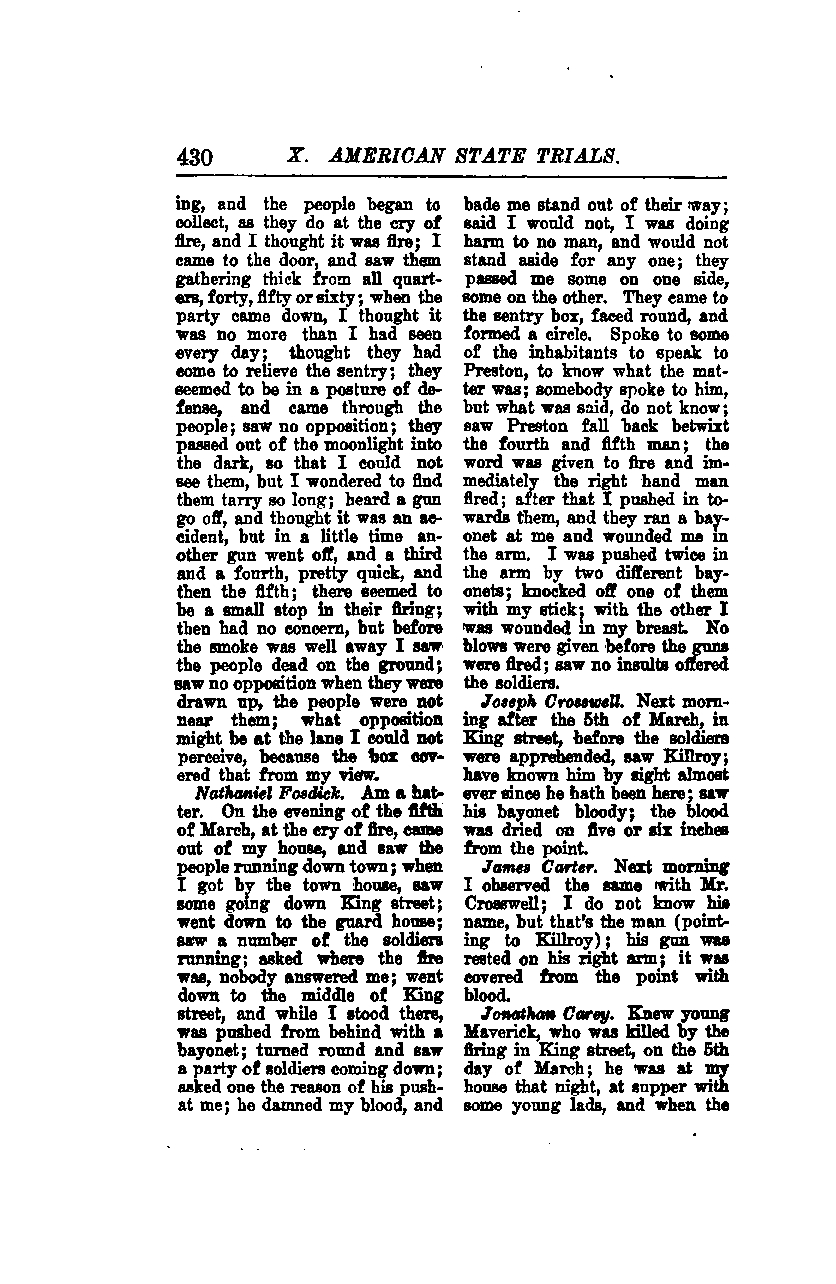 Jonathan Carey said that young Maverick, who was killed by the firing in King Street on the 5th day of March, was at his house that night at supper with some young lads, and when the...