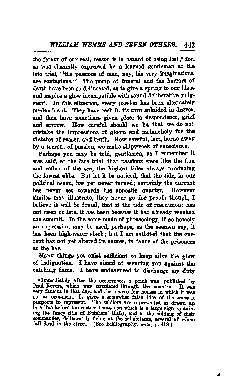 Perhaps you may be told, gentlemen, as I remember it was said at the late trial, that passions were like the flux and reflux of the sea, the highest tides always producing the lowest ebbs. But let it be noticed that the tide, in our political ocean, has yet never turned; certainly the current has never set towards the opposite quarter. However similes may illustrate, they never go for proof; though, I believe it will be found that if the tide of resentment has not risen of late, it has been because it had already reached the summit. In the same mode of phraseology, if so homely an expression may be used, perhaps, as the seamen say, it has been high-water slack; but I am satisfied that the current has not yet altered its course in favor of the prisoners at the bar.