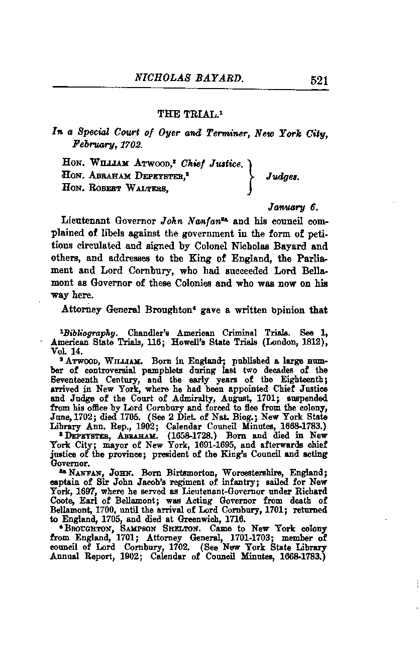 In a Special Court of Oyer and Terminer, New York City, February 1702.
