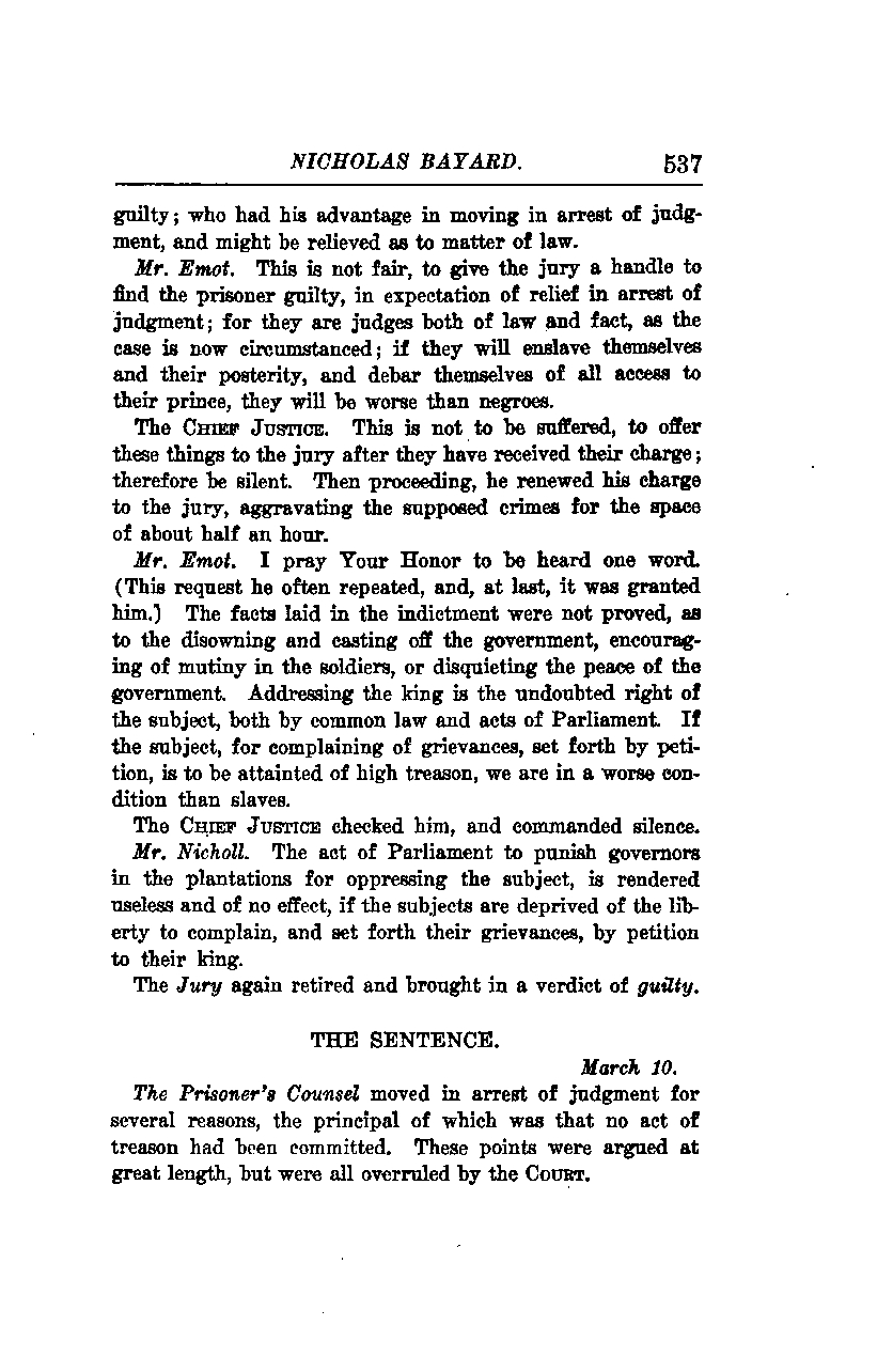Nicholas Bayard was found guilty; he had the advantage of moving in arrest of judgment and might be relieved as to matters of law.