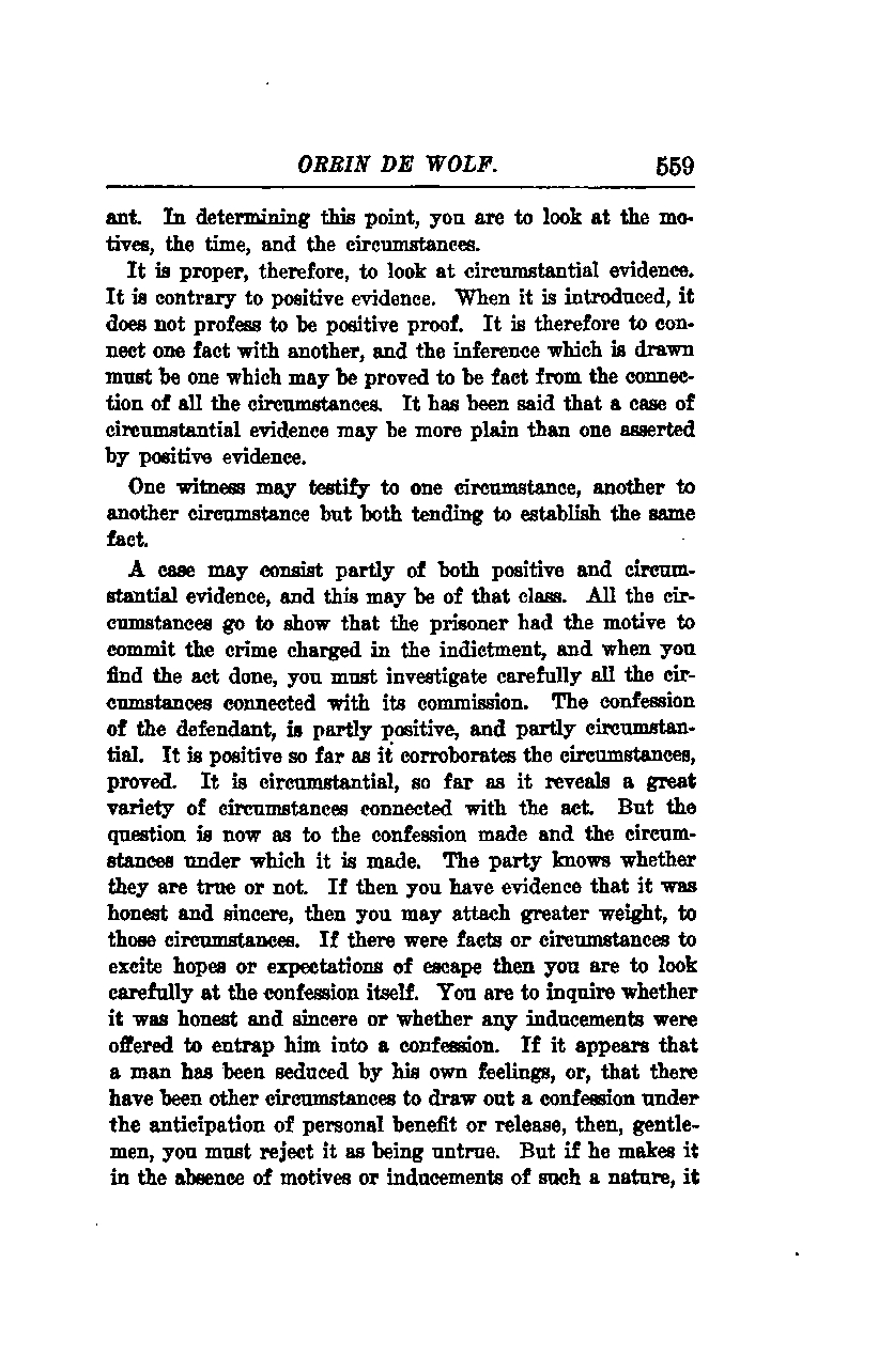 A case may consist of both positive and circumstantial evidence, and this may be of that class. All the circumstances suggest that the prisoner had the motive to commit the crime charged in the indictment. When you find the act done, you must carefully investigate all the circumstances connected with its commission. The confession of the defendant is partly positive and partly circumstantial. It is positive insofar as it corroborates the proven circumstances. It is circumstantial insofar as it reveals a variety of circumstances connected with the act. But the question now is about the confession made and the circumstances under which it was made. The party knows whether these are true or not. If you have evidence that it was honest and sincere, then you may attach greater weight to those circumstances. If there were facts or circumstances that excited hopes or expectations of escape, then you are to look carefully at the confession itself. You are to inquire whether it was honest and sincere or whether any inducements were offered to entrap him into a confession. If it appears that a man has been seduced by his own feelings, or that there have been other circumstances to draw out a confession under the anticipation of personal benefit or release, then, gentlemen, you must reject it as being untrue. But if he makes it in the absence of motives or inducements of such a nature, it may be considered more reliable.