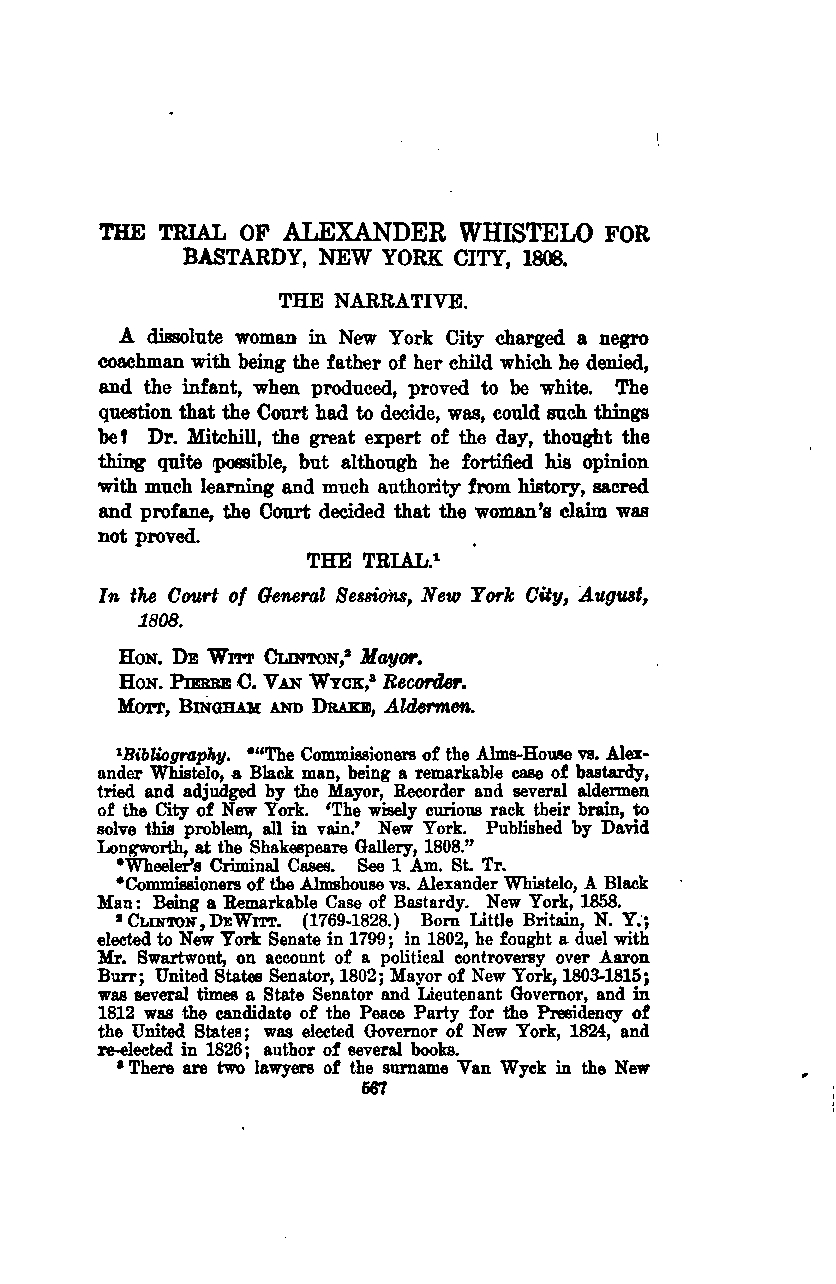 THE TRIAL OF ALEXANDER WHISTELO FOR BASTARDY, NEW YORK CITY, 1808