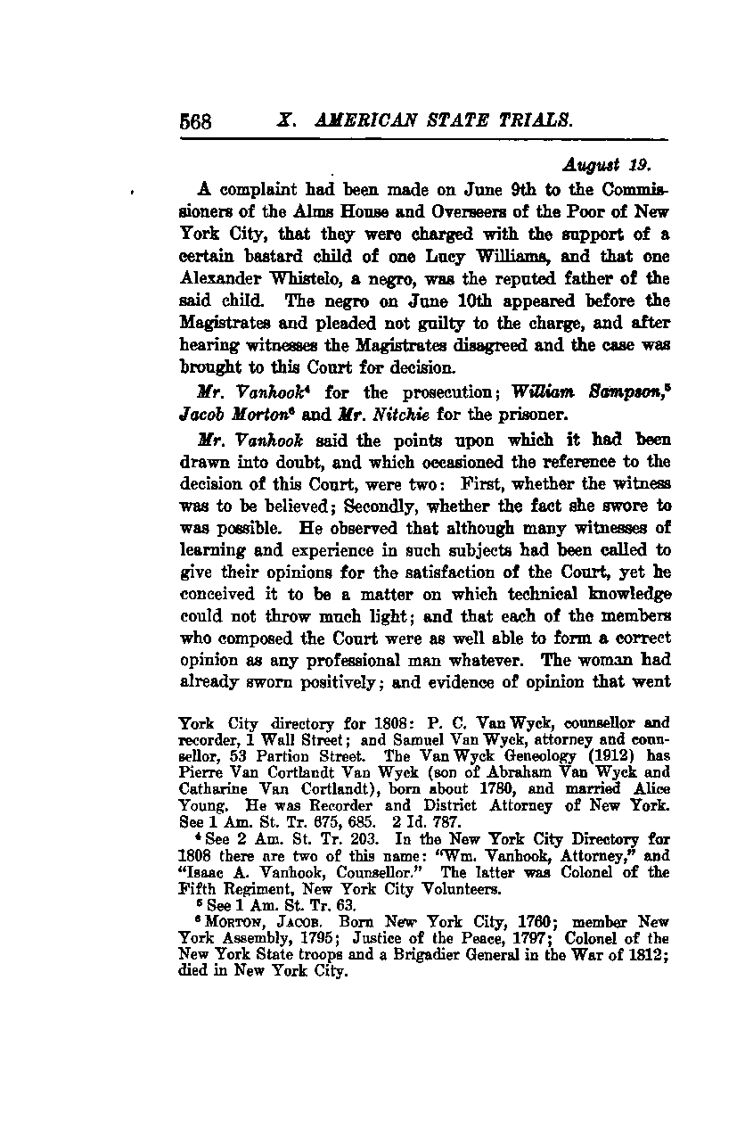 Mr. Vanhook represented the prosecution, while William Sampson, Jacob Morton, and Mr. Nitchie defended the prisoner.