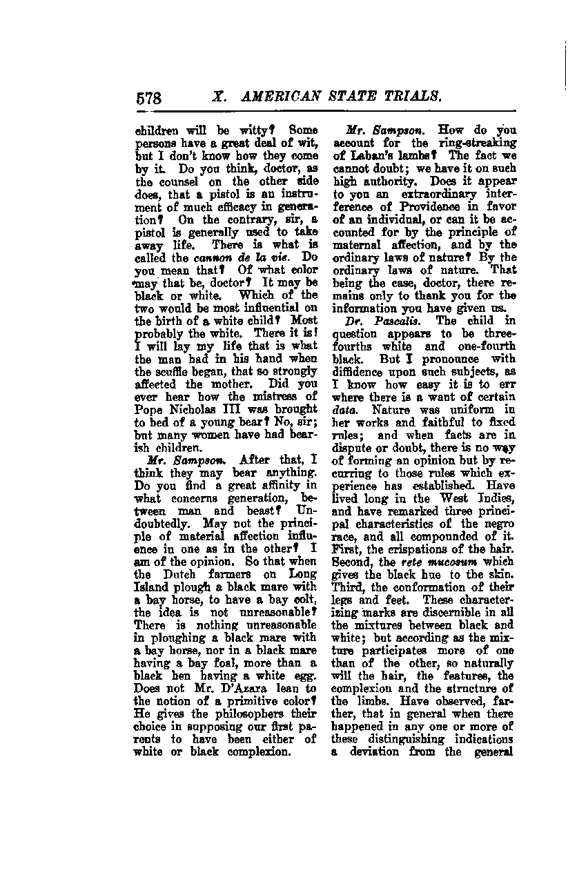Mr. Sampson: After that, I think they may bear anything. Do you find a great affinity in what concerns generation, between man and beast?