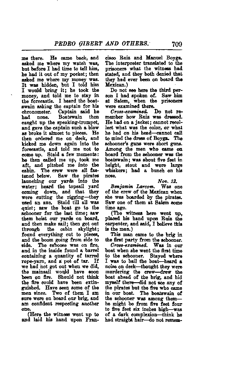 Benjamin Larcom: I was one of the crew of the Mexican when she was boarded by the pirates. I saw one of them at Salem some time ago.