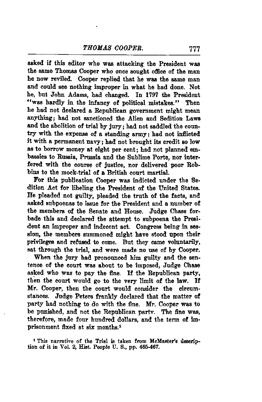This narrative of the trial is taken from McMaster’s description of it in Volume 2 of "History of the People of the United States," pages 465-467.