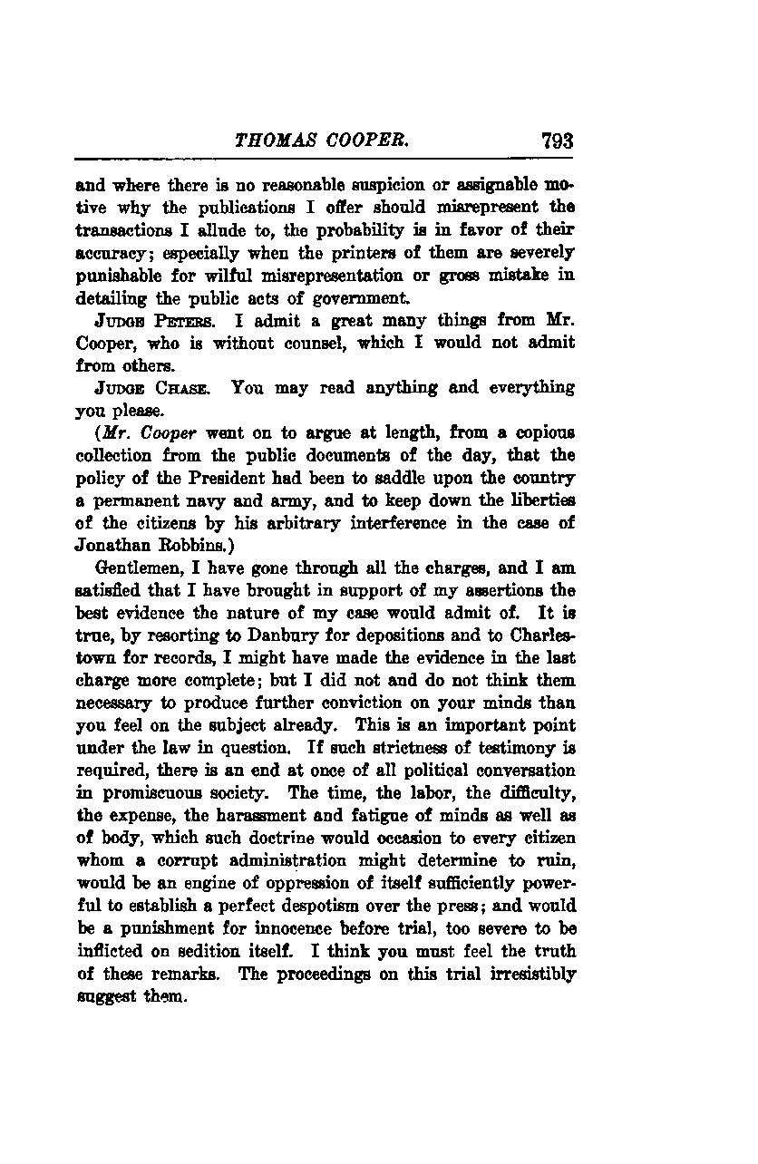 Judge Peters: I admit a great many things from Mr. Cooper, who is without counsel, which I would not admit from others.