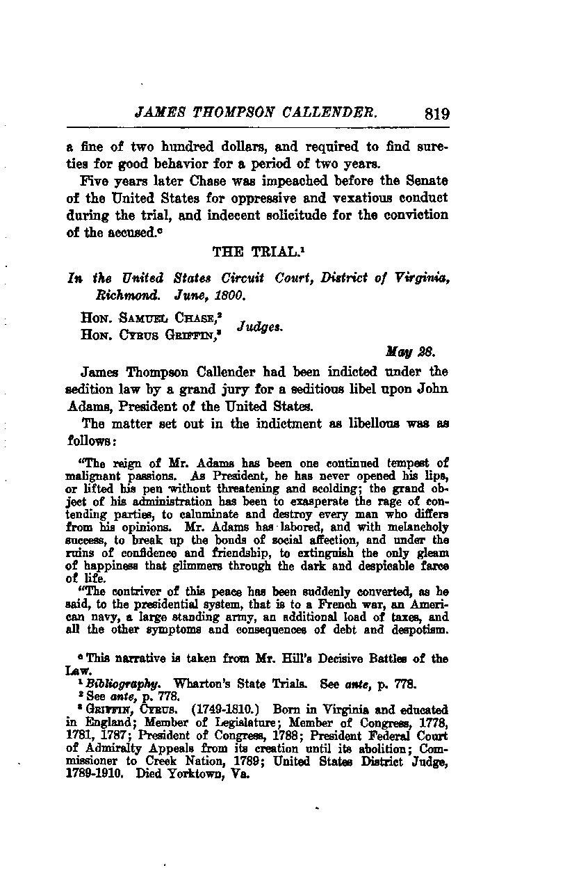 Hon. Samuel Chase and Hon. Cyrus Griffin, Judges.