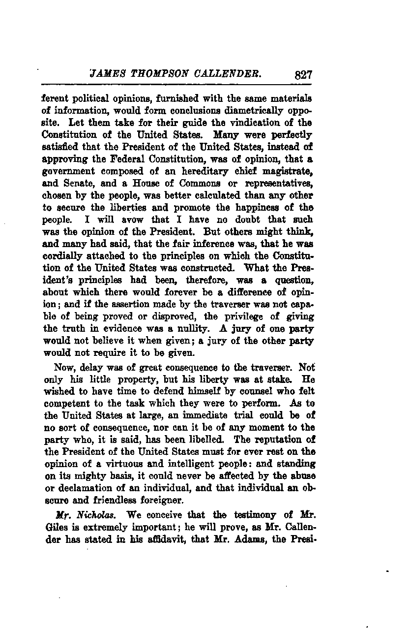 Mr. Nicholas: We conceive that the testimony of Mr. Giles is extremely important. He will prove, as Mr. Callender has stated in his affidavit, that Mr. Adams, the President...