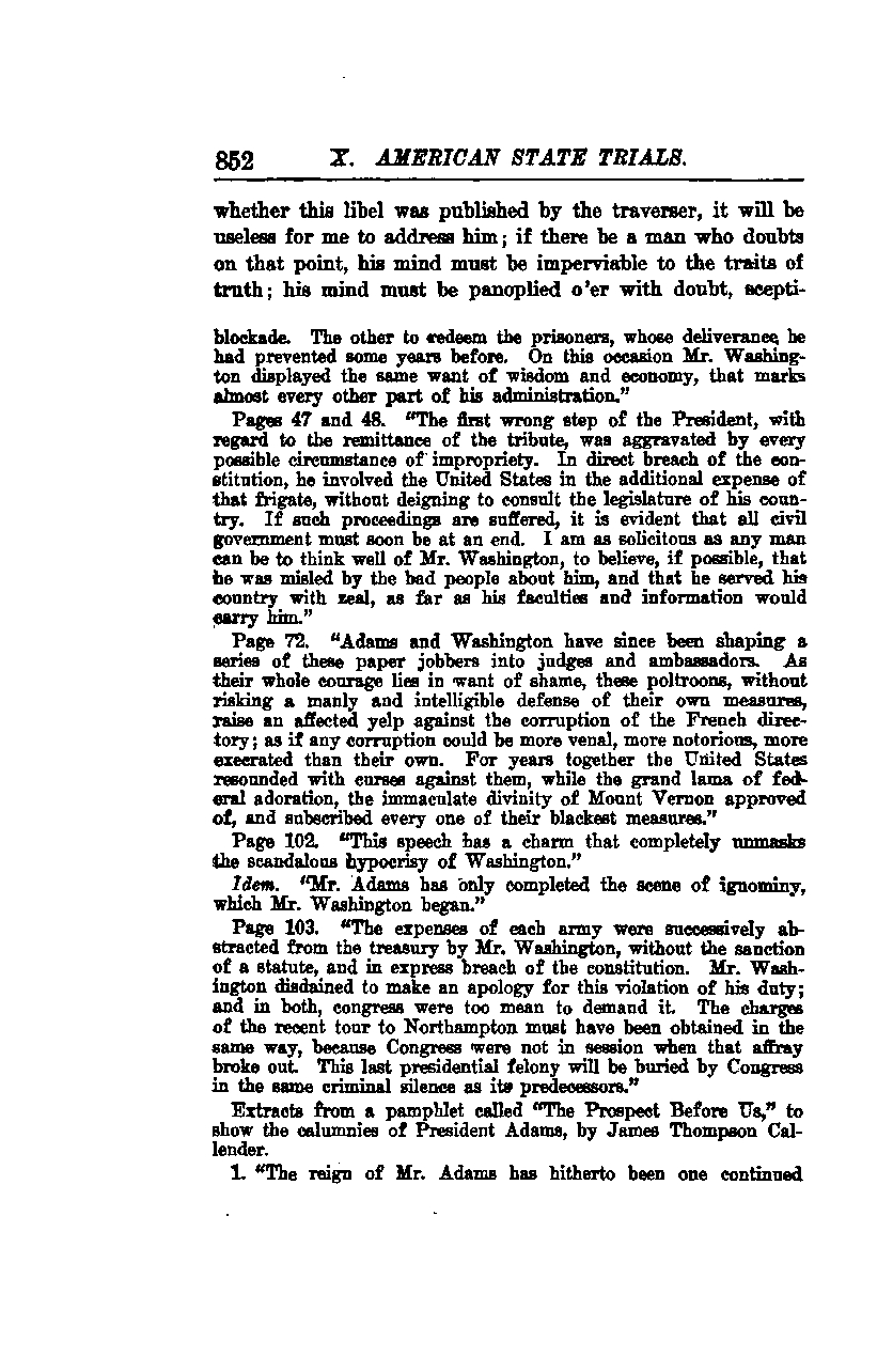 These are extracts from a pamphlet called "The Prospect Before Us," intended to show the calumnies of President Adams, by James Thompson Callender.