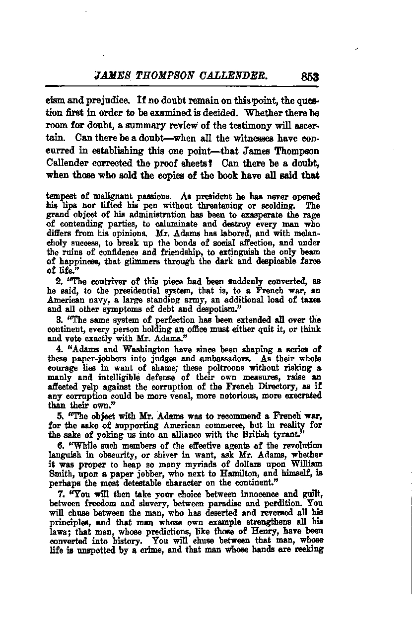 If no doubt remains on this point, the question first in order to be examined is decided. Whether there is room for doubt, a summary review of the testimony will ascertain. Can there be a doubt—when all the witnesses have concurred in establishing this one point—that James Thompson Callender corrected the proof sheets? Can there be a doubt when those who sold the copies of the book have all said that?