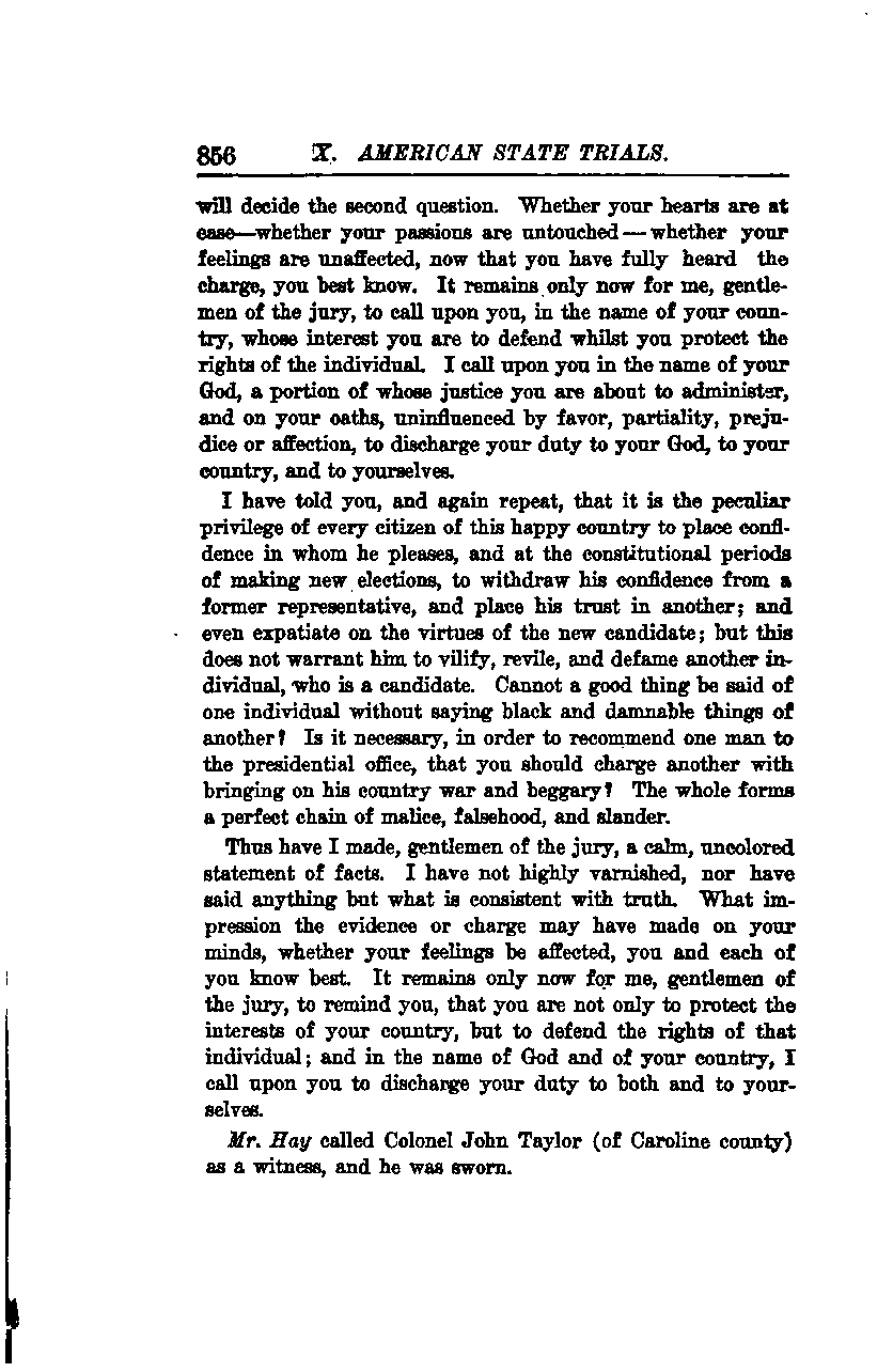 Mr. Hay called Colonel John Taylor (of Caroline County) as a witness, and he was sworn.