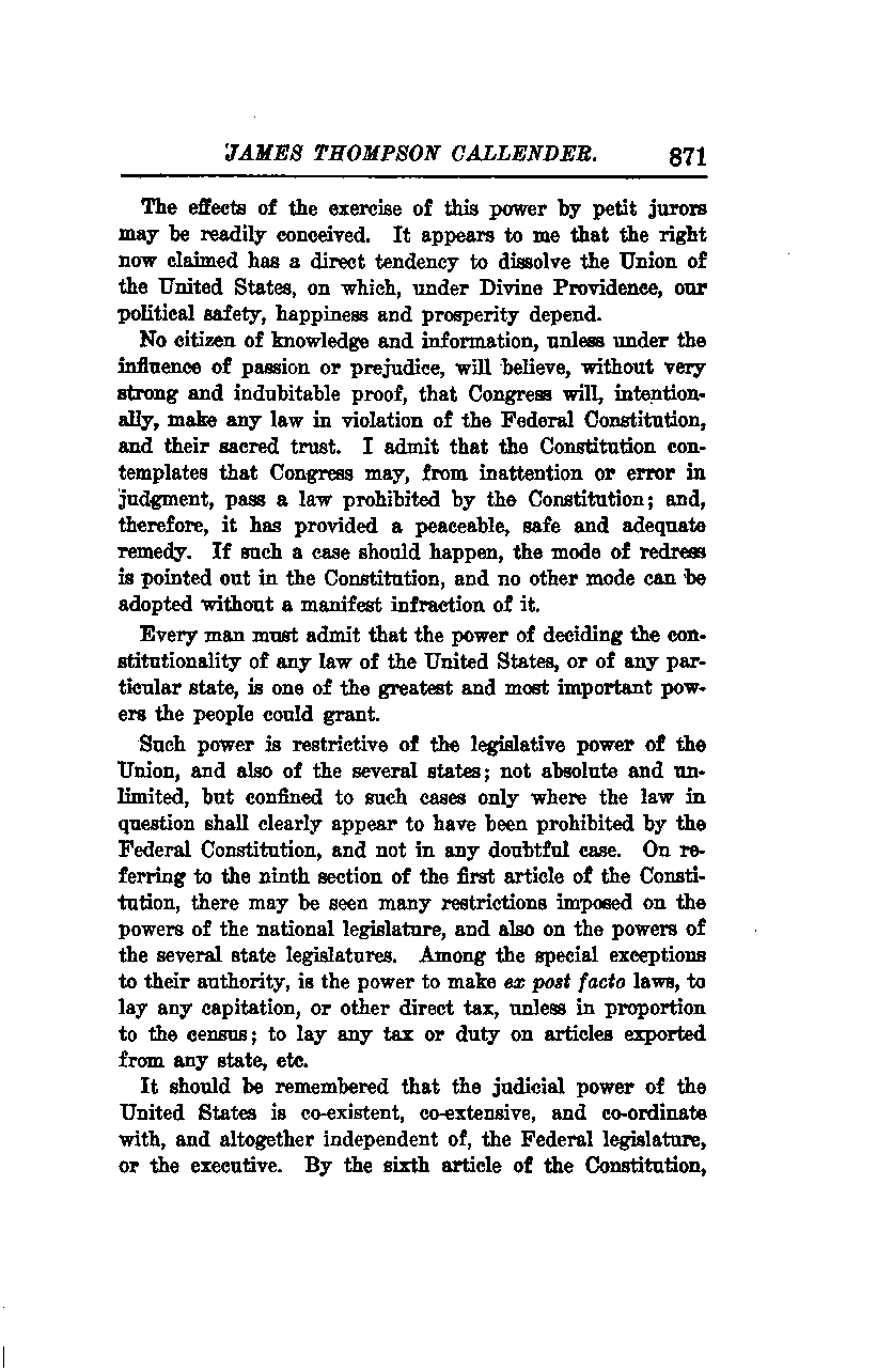 It should be remembered that the judicial power of the United States is co-existent, co-extensive, and co-ordinate with, and altogether independent of, the Federal legislature or the executive. By the sixth article of the Constitution, it is established that...