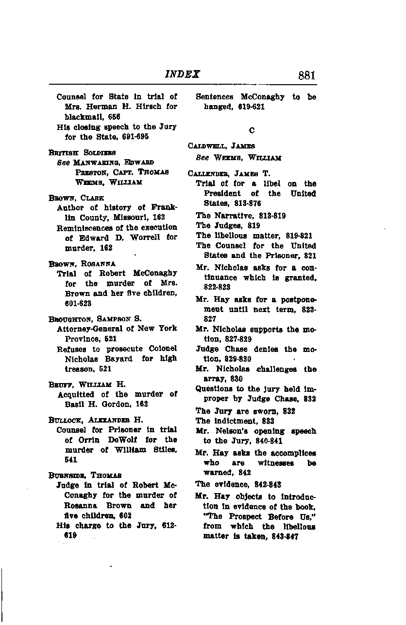 Judge in the trial of Robert McConaghy for the murder of Rosanna Brown and her five children, 602. His charge to the jury, 612-619. Sentences McConaghy to be hanged, 619-621.