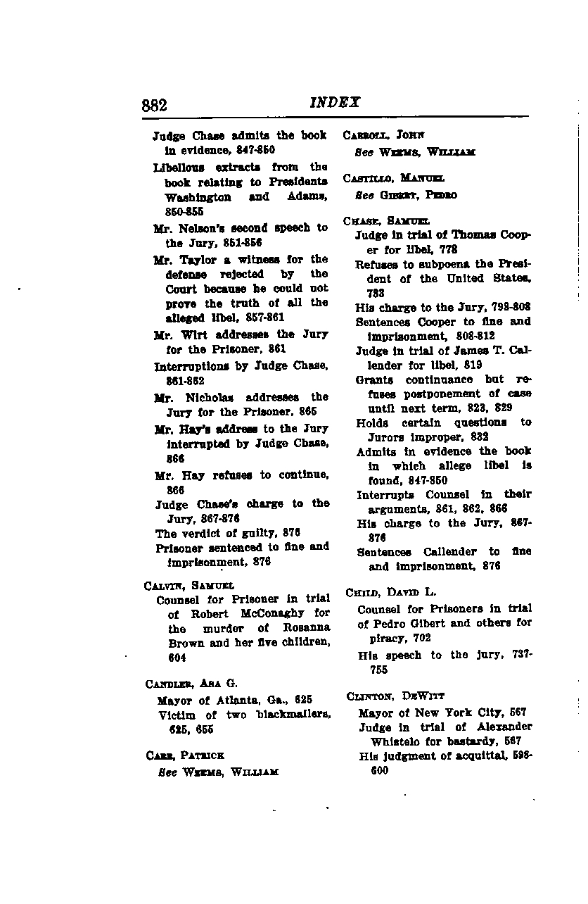 - Mr. Hay’s address to the jury is interrupted by Judge Chase, page 866.
